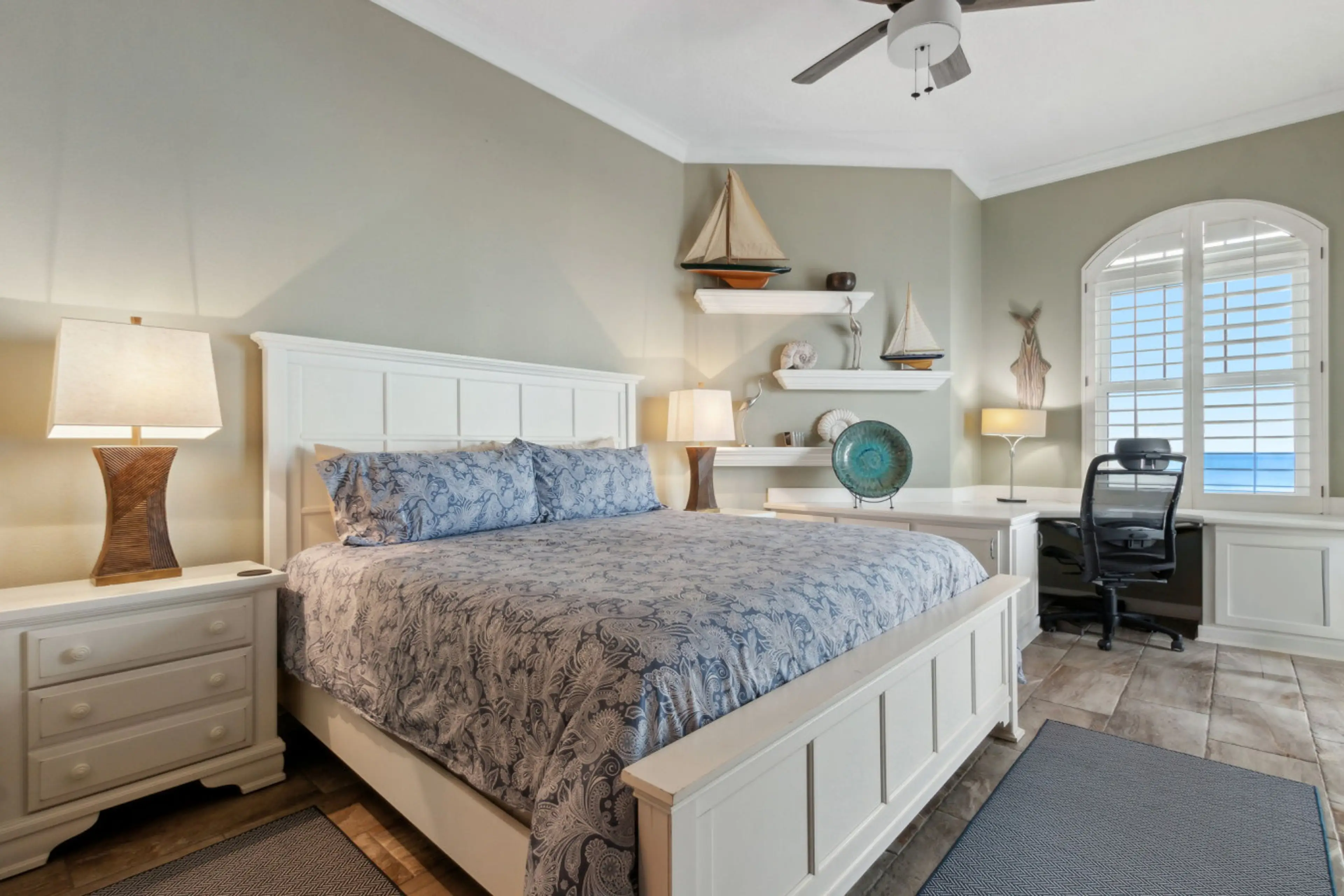 The owners did a beautiful job of decorating it. It's both elegant and comfortable. Beautiful views, nicely furnished and the dining table chandelier is exquisite. If you dim it, it changes to beautiful hues of brown and amber that complement the decor.